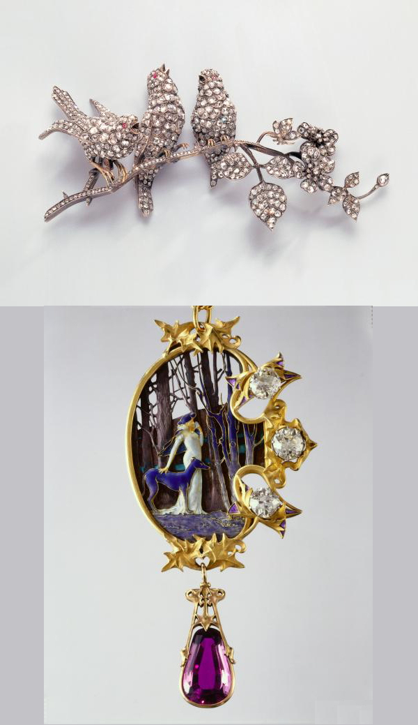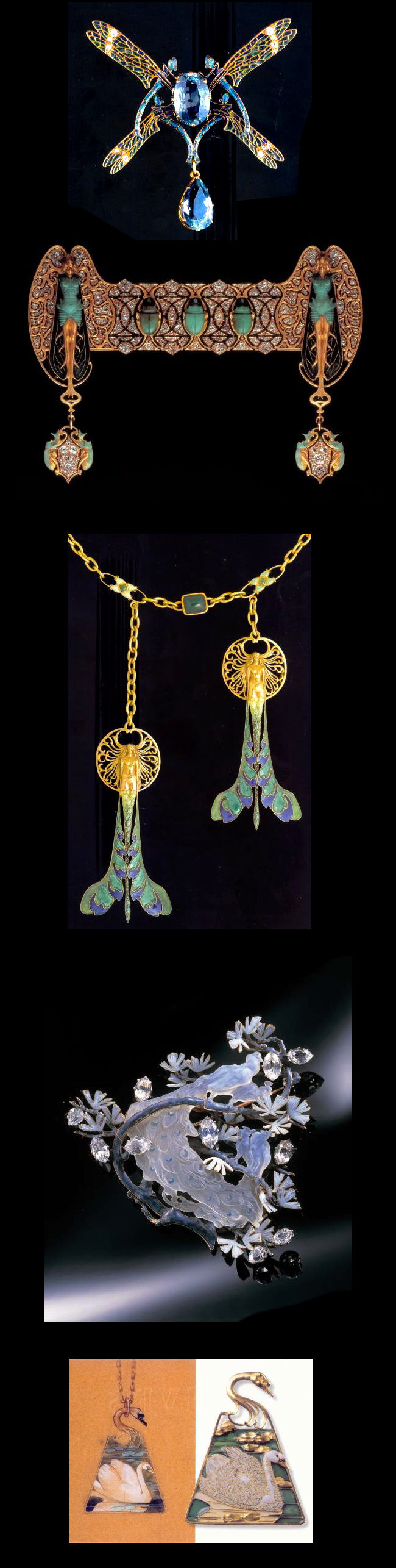 La Lorgnette - dreeli - 13-02-2008 ![]() Une épingle à chapeau en émail de Lalique La Lorgnette - Dournon - 13-02-2008 aaargl... encore dans le mille! juste quand j'avais abandonné Gallé en me disant qu'il faudrait voir du côté de Lalique! La Lorgnette - Volyova - 13-02-2008 Encore bien ouej la Dreel!! Quelle pro! En plus grand, une épingle à chapeau "Guêpes et Scabieuse" Or, émail, diamants Une bonne occasion de vous montrer quelques bijoux de Lalique surtout connu pour son travail avec le verre. Je ne suis pas toujours fan des trucs qui brillent à mort mais là certaines pièces inspirées de motifs antiques mélés à des décors purement "Art nouveau", floraux et animaux sont quand même incroyables. L'utilisation de pierre semi-précieuse et de matériaux moins "nobles" à l'époque (l'émail, les métaux "simples" etc.) me plaît aussi énormément. D'autres réalisations de Lalique, certainement produites en plus grandes quantité à l'époque, sont beaucoup plus épurées, et parfois assez contemporaines. Lalique sur le Wiki ------------------------------------------------------------
